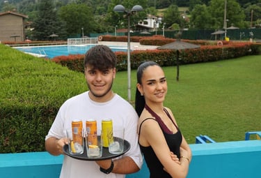 "16 universitarios vascos pasan el verano tras la barra del bar de las piscinas de Lemoa para costear sus estudios en Nueva York."